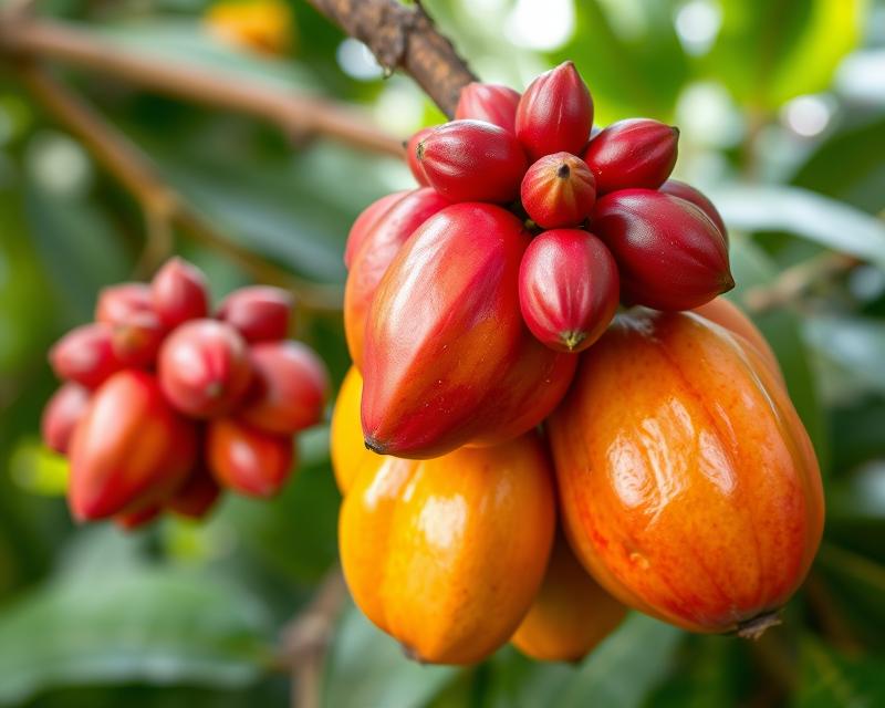 Rambai, znany również jako Baccaurea motleyana, to fascynujący owoc pochodzący z bujnych tropikalnych lasów Azji Południowo-Wschodniej. Cieszy się dużą popularnością na lokalnych rynkach oraz w ogrodach. Sezon zbiorów przypada na letnie miesiące, kiedy te małe owoce, osiągające średnicę od 2 do 3 centymetrów, są na najlepszej drodze do dojrzałości. Mają owalny, okrągły lub wydłużony kształt, a ich twarda, ale łatwa do obrania skórka przybiera różne odcienie: